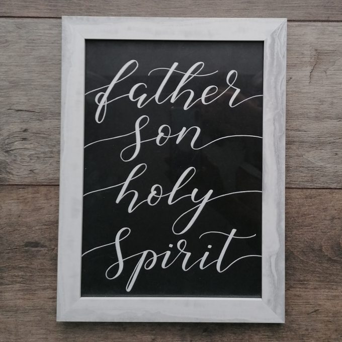 Handwritten Calligraphy in an A4 Grey Marble Effect, Glass Frame.